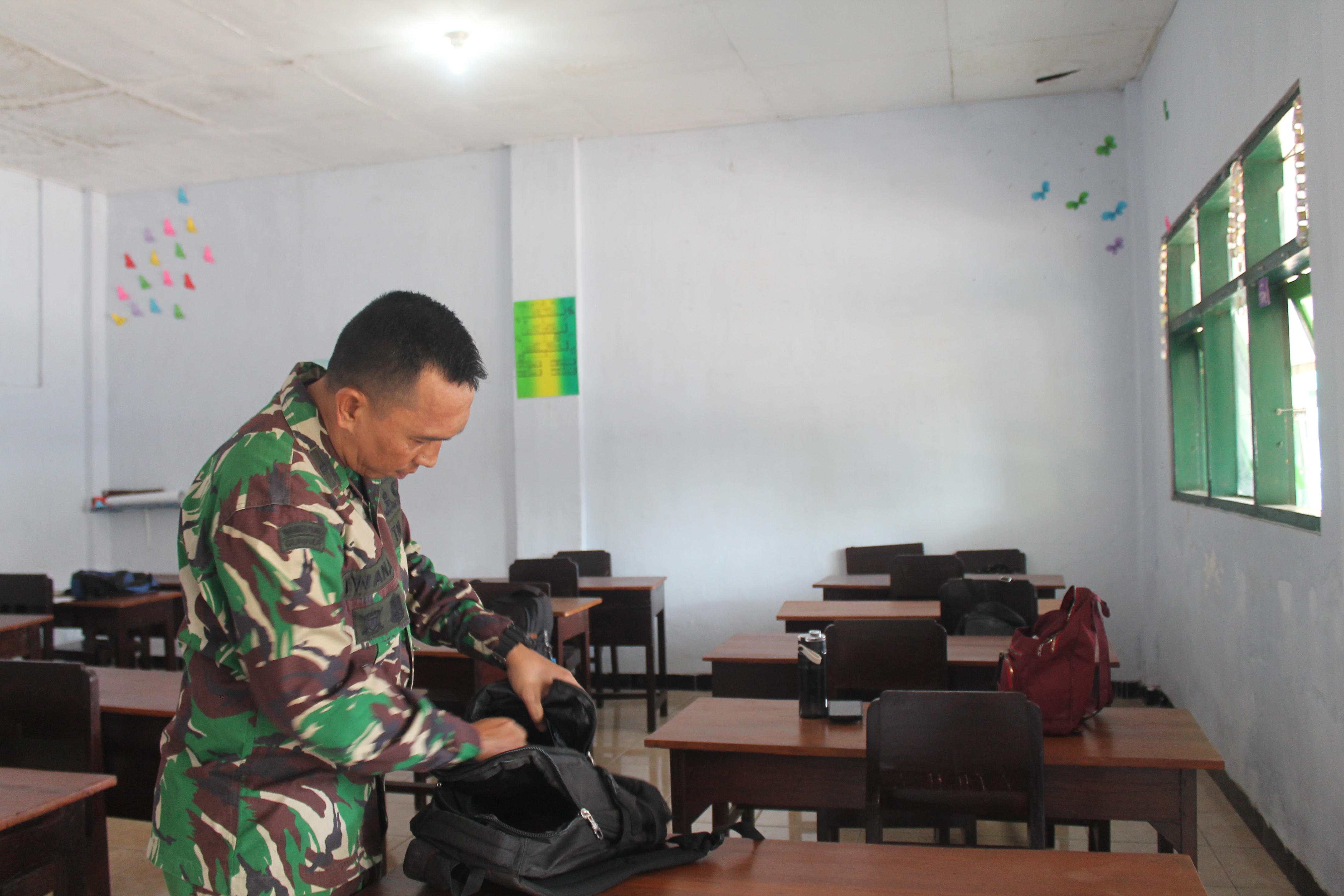 “Aku ingin jadi TNI!” Jawabnya. Ketika itu seisi ruangan dibuat bergema dengan suara lantangnya. Sampai-sampai angin menyapa yang masuk ke dalam ruangan itu seolah berbisik bahwa Alif pasti akan menjadi TNI